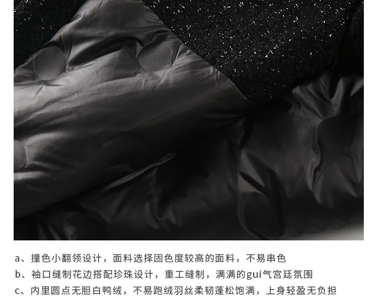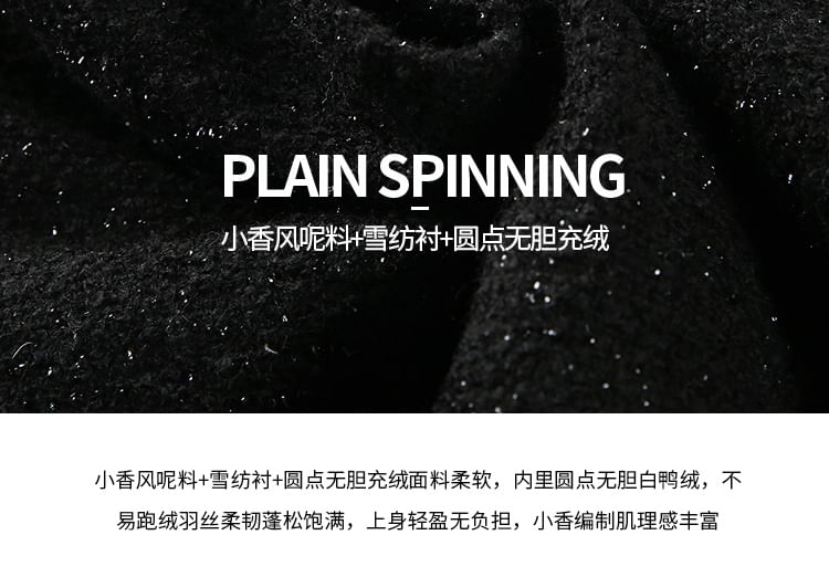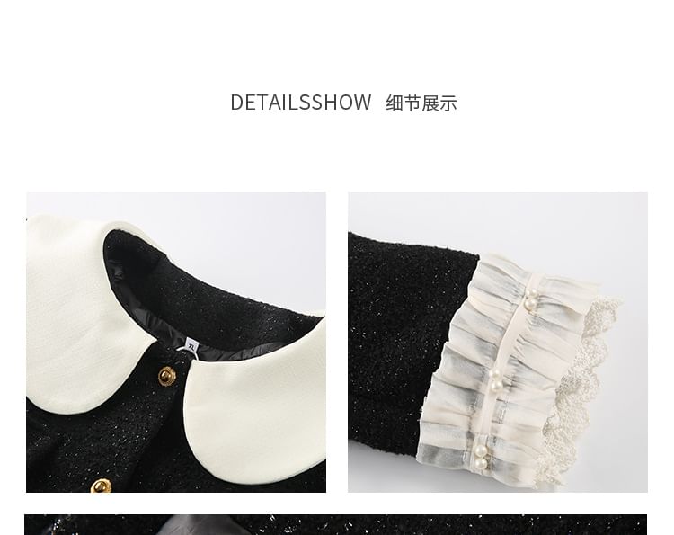 Plus Size Contrast Collar Frill Trim Button Tweed Coat Dress