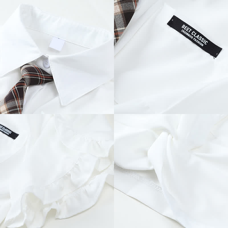 Pocket Lapel Tie T-Shirt Denim Overall Dress Set
