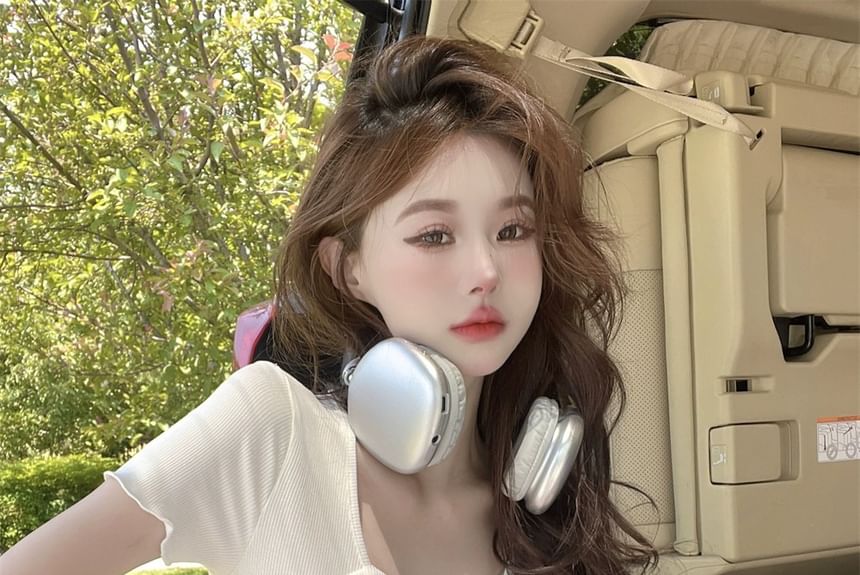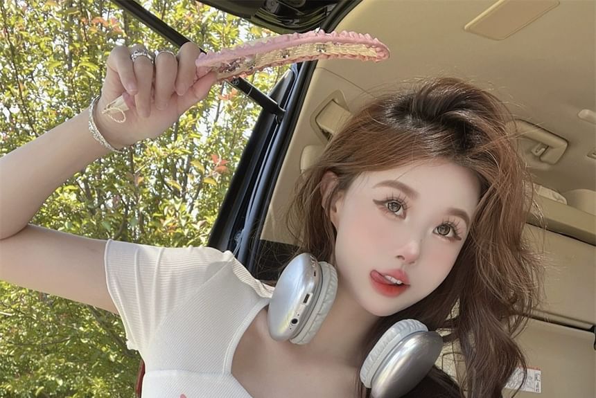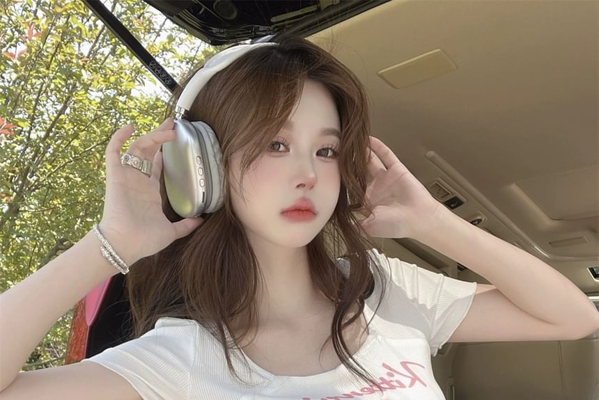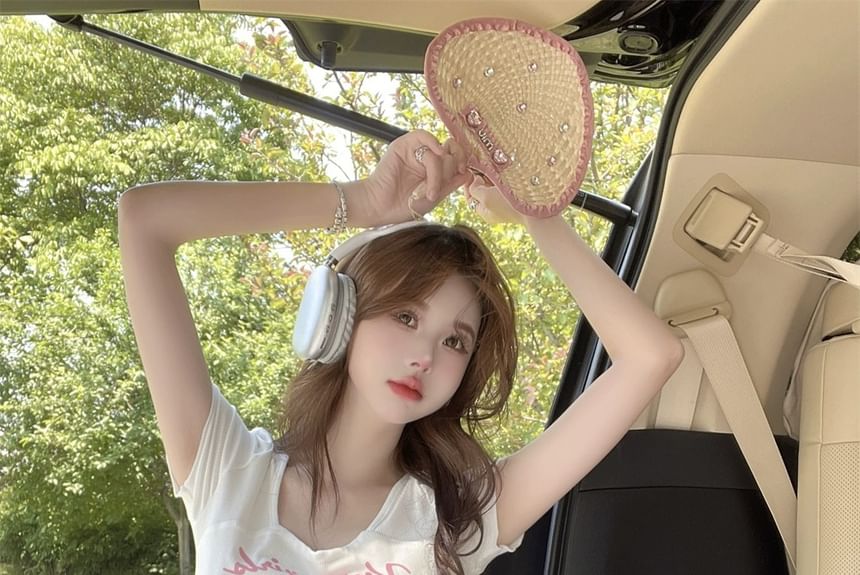 Short-Sleeve Square Neck Cartoon Lettering Print Tee