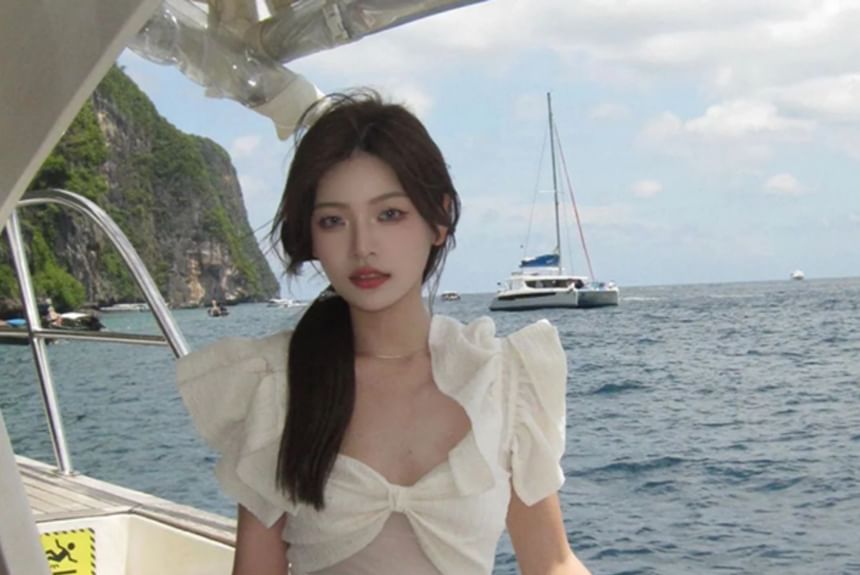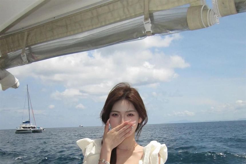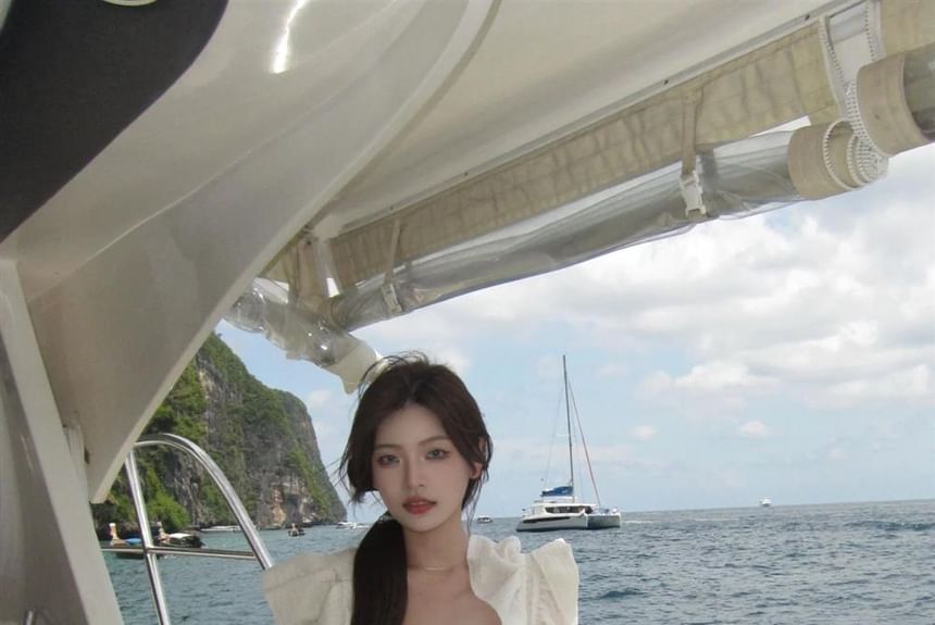 Puff-Sleeve Asymmetrical Plain Bow Cutout Midi Sundress