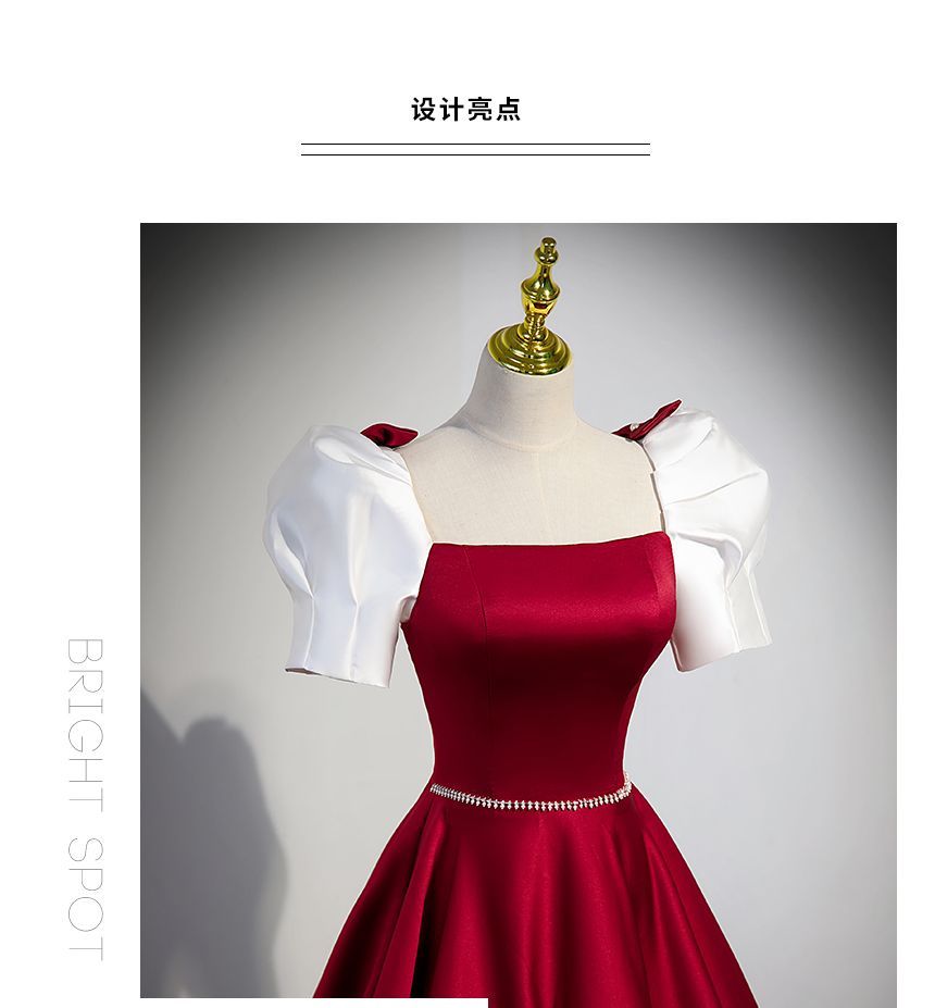 Puff-Sleeve Paneled Lace-Up Back A-Line Evening Gown