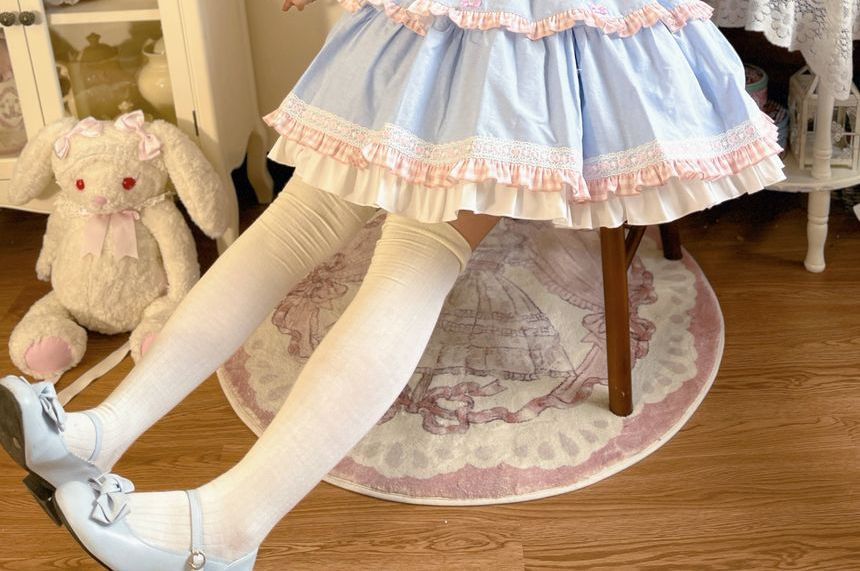 Puff-Sleeve Rabbit Ear Collar Heart Applique Gingham Ruffle Blouse