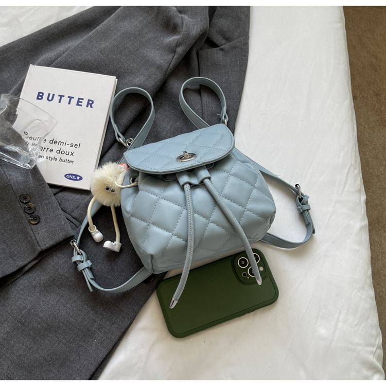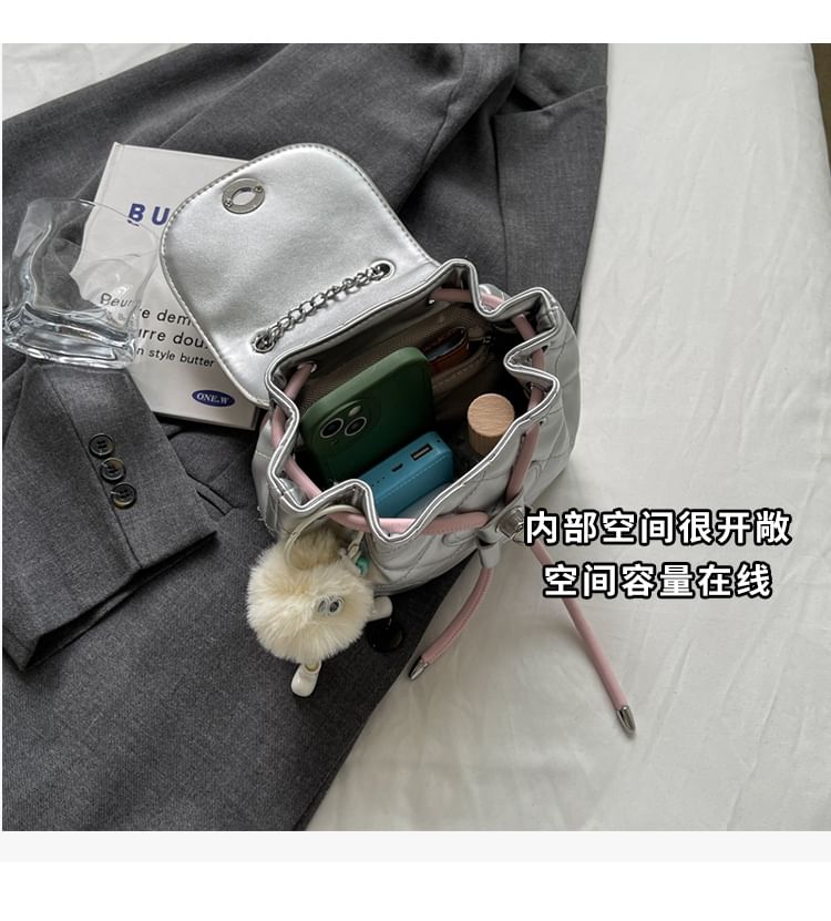Quilted Chain Strap Faux Leather Backpack / Bag Charm / Set
