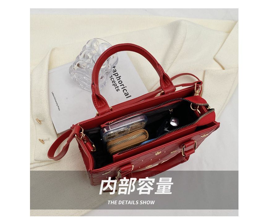 Quilted Floral Studded Top Handle Crossbody Bag