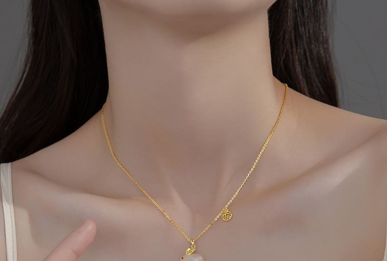 Rabbit Faux Gemstone Pendant S925 Sterling Silver Necklace