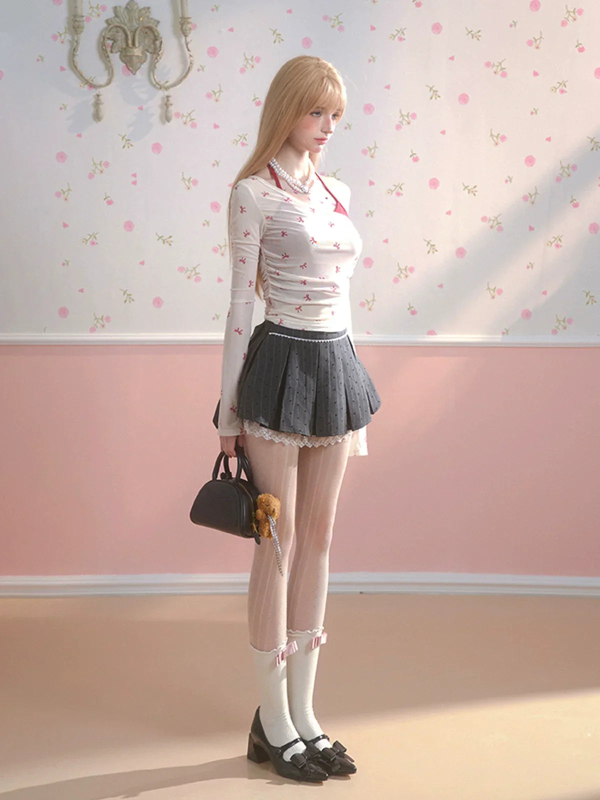 Red Fake Two-Piece Long Sleeve T-Shirt