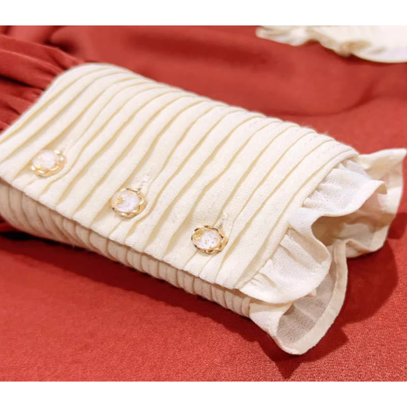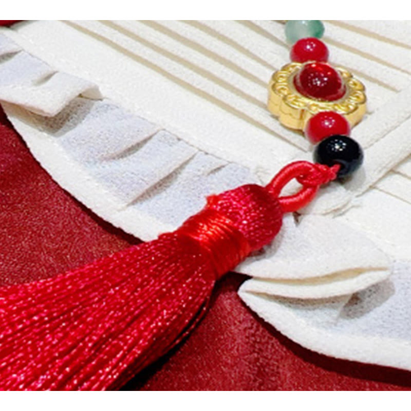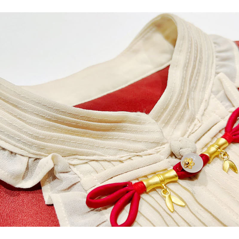 Red Tassel Shirt Bamboo Print Skirt Set
