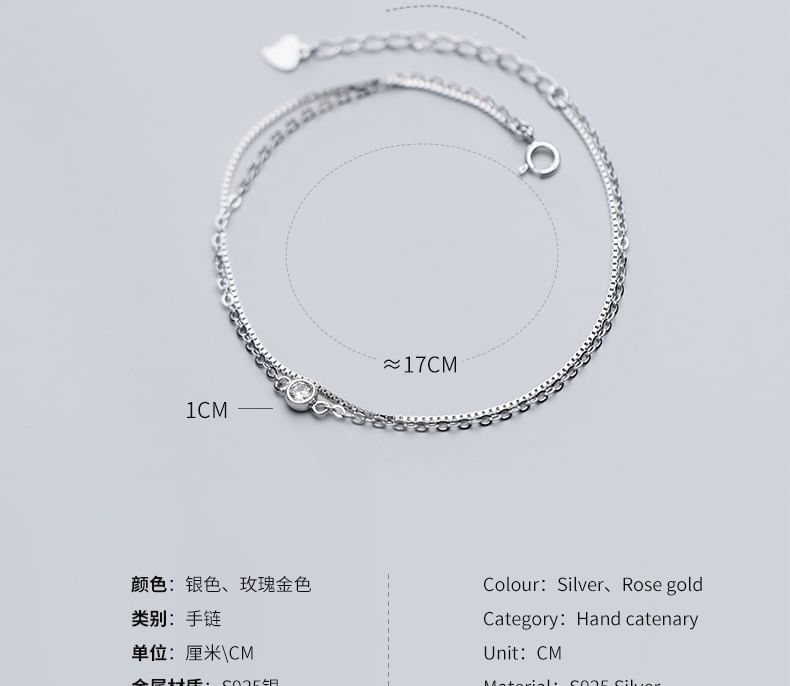 Rhinestone Layered S925 Sterling Silver Bracelet