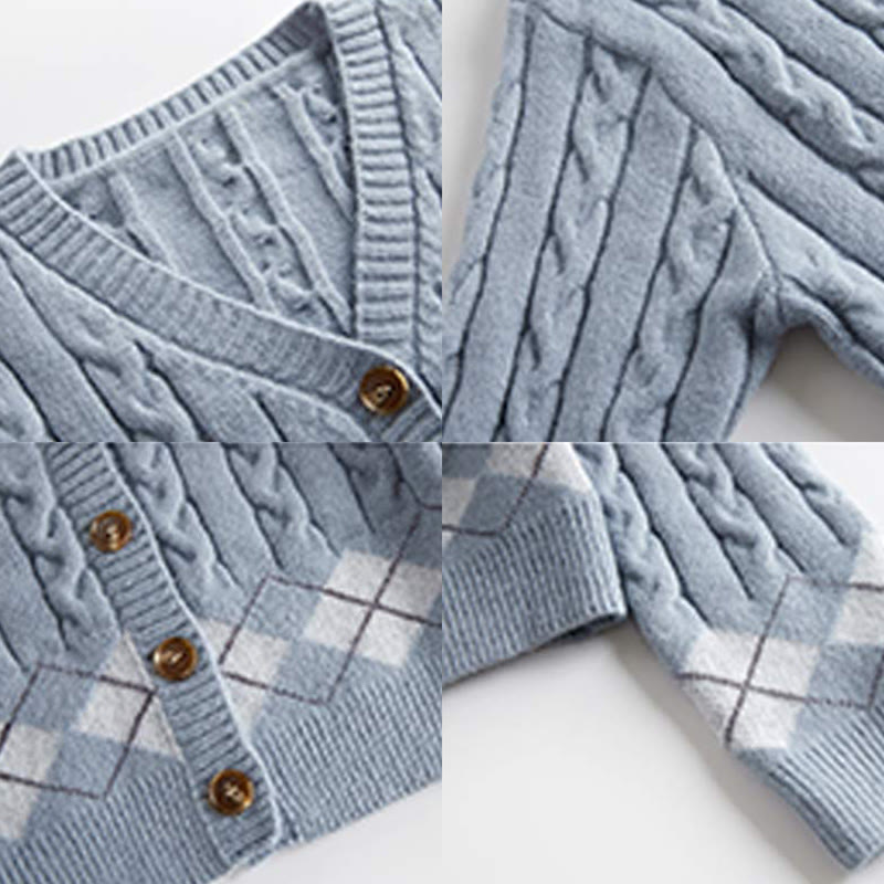 Rhombus Print Cardigan Sweater Laple Long Sleeve Dress