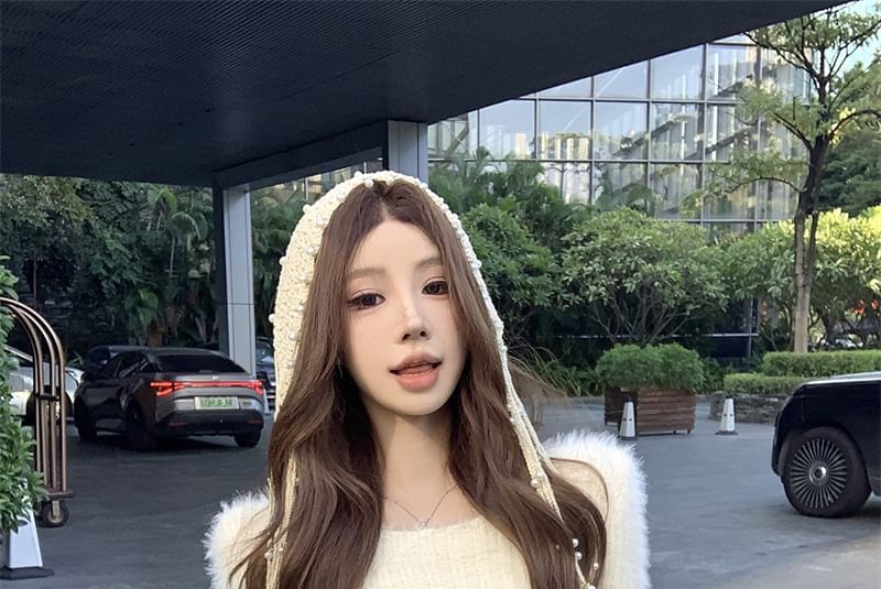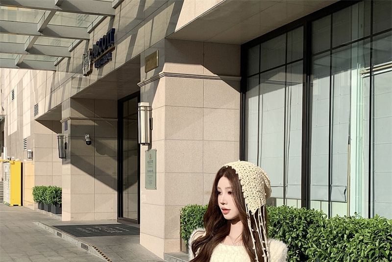 Round Neck Plain Crop Sweater / High Rise Striped Ribbed Knit Maxi Pencil Skirt