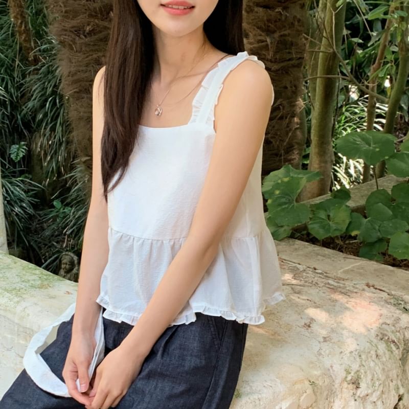 Ruffle Strap Tie Back Gingham Peplum Cami Top