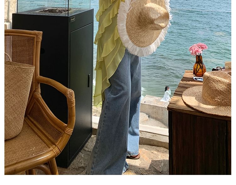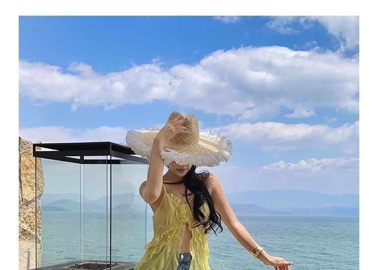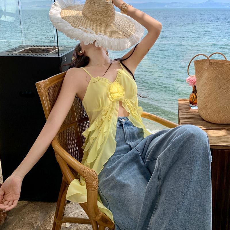 Ruffle Trim Slit Camisole Top