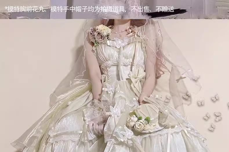 Lolita Ruffles Trim Spaghetti Strap Midi Tiered A-Line Dress / Set