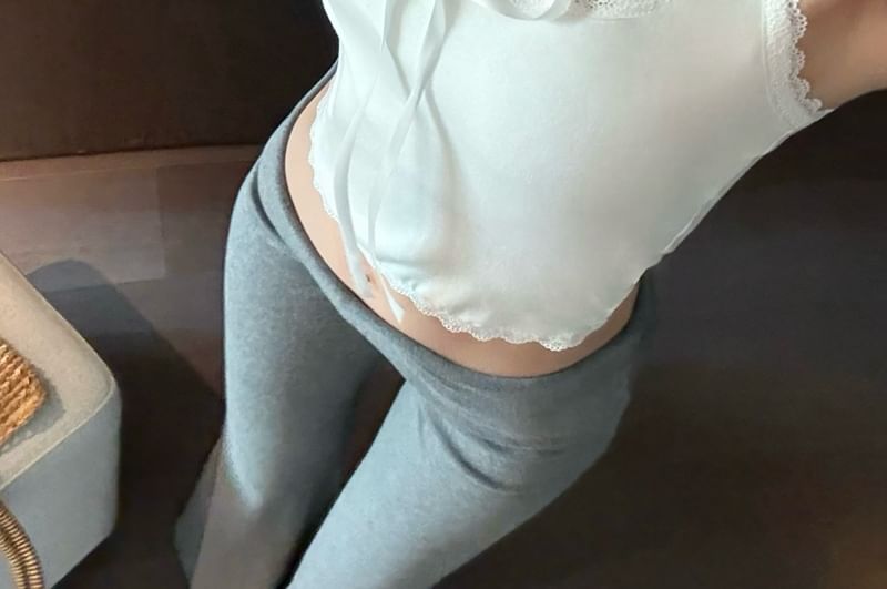 Scoop Plain Top Neck Cropped Trim Bow Lace Halter