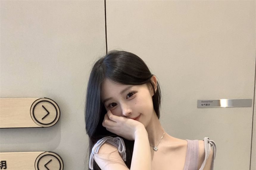 Set: Scoop Neck Plain Tank Top + Tie Shoulder Deep Plunge Plain Camisole Top