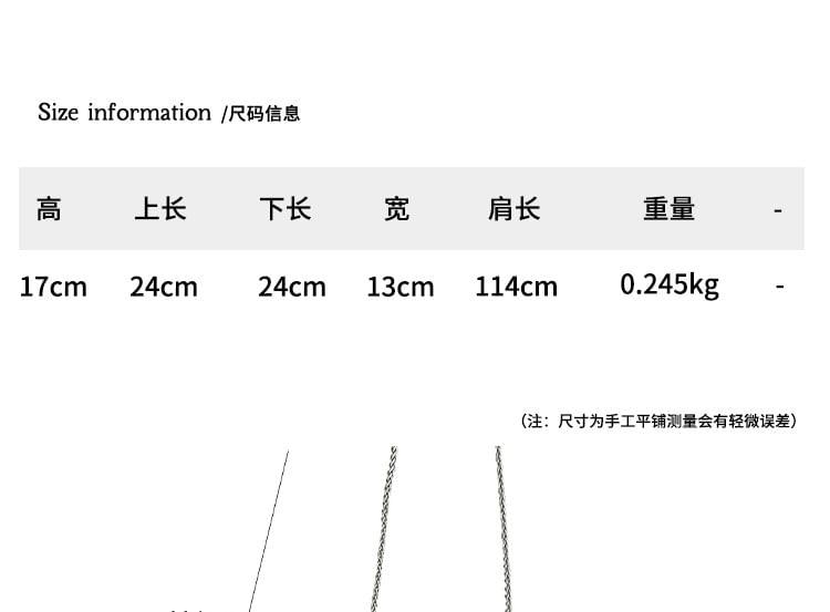 | Height | Upper Length | Bottom Length | Width | Strap Length |