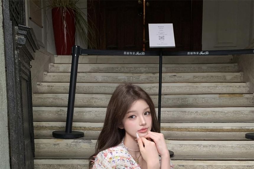 Set: Button-Up Tweed Crop Jacket + Mini Skirt