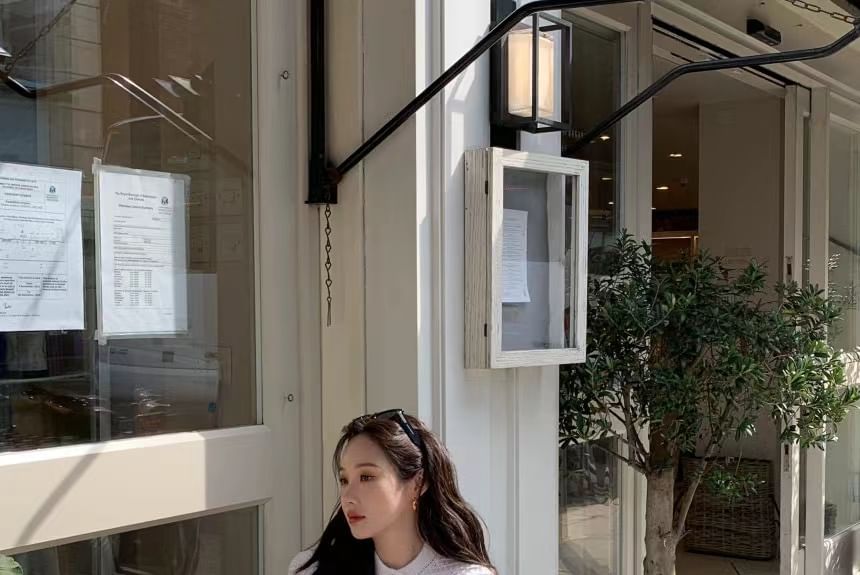 Set: Crew Neck Plain Knitted Button Cardigan + High Waist Plain Shorts
