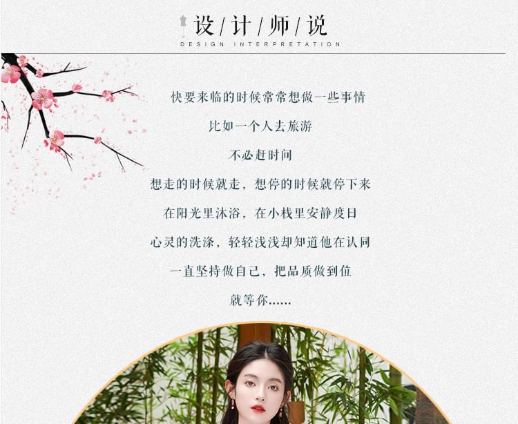 Set: Elbow-Sleeve Flower Embroidered Hanfu Blouse + High Waist Plain Wide Leg Pants