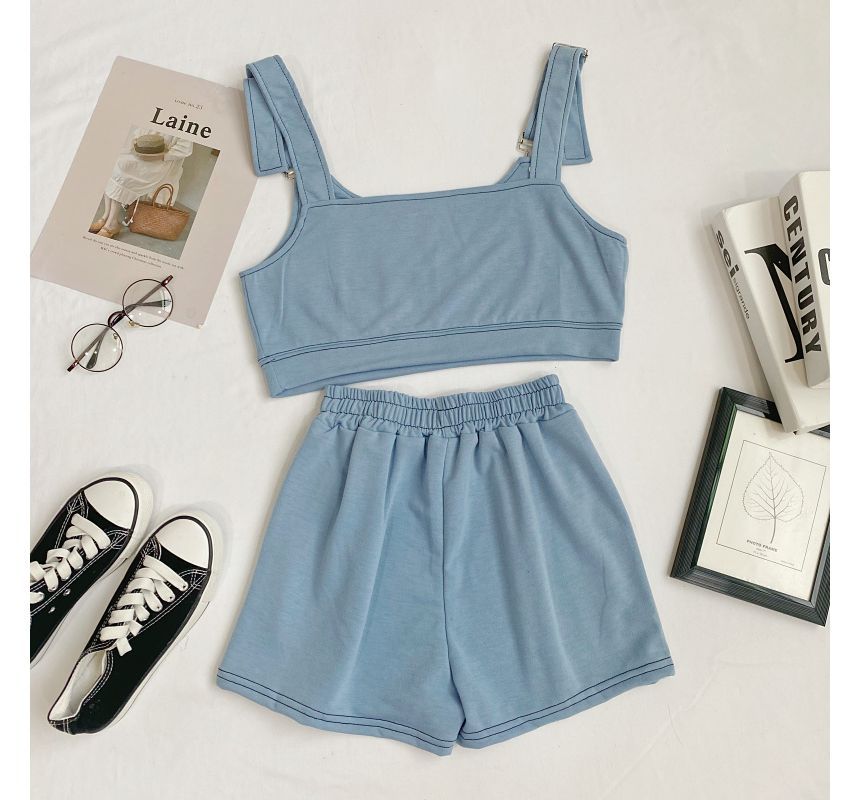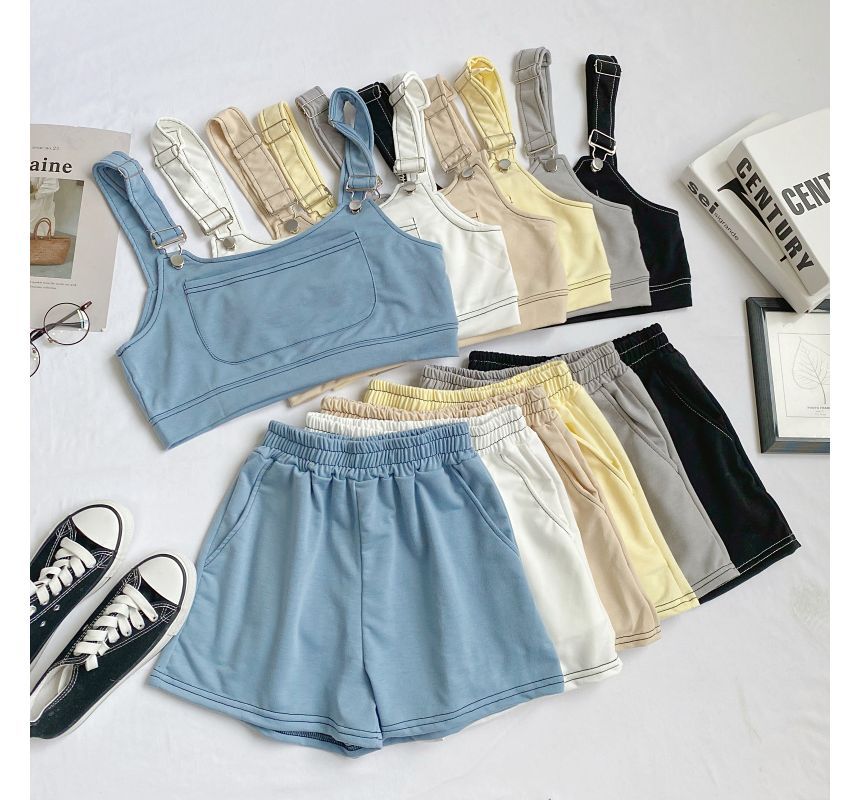 Set: Plain Crop Tank Top + Shorts