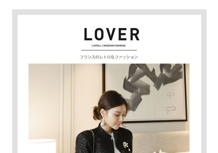 Set: Tweed Sequined Button-Up Jacket + High Waist Midi A-Line Skirt