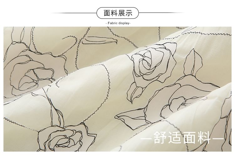 Short-Sleeve Collar Floral Midi A-Line Dress