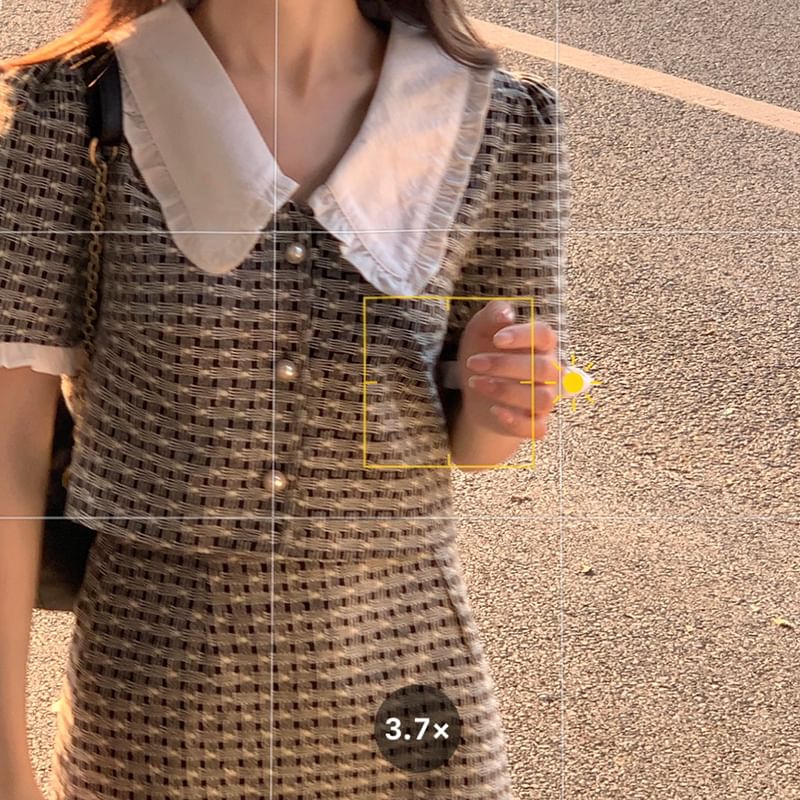 Short-Sleeve Contrast Collar Ruffle Panel Faux Pearl Button Top / High Waist Mini Pencil Skirt
