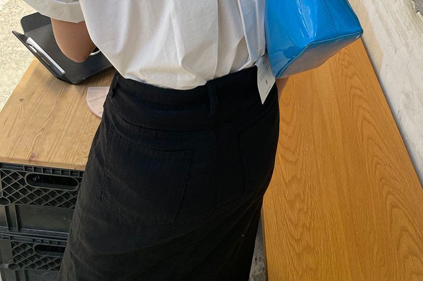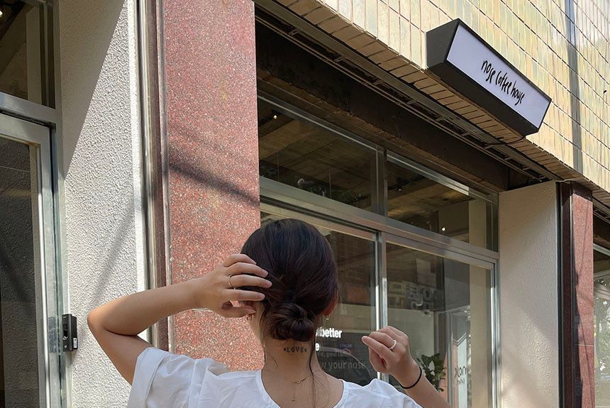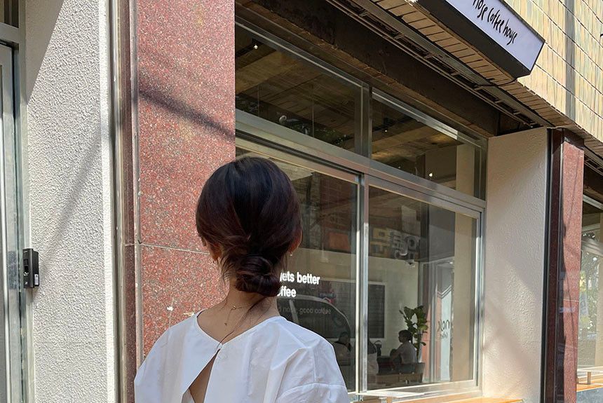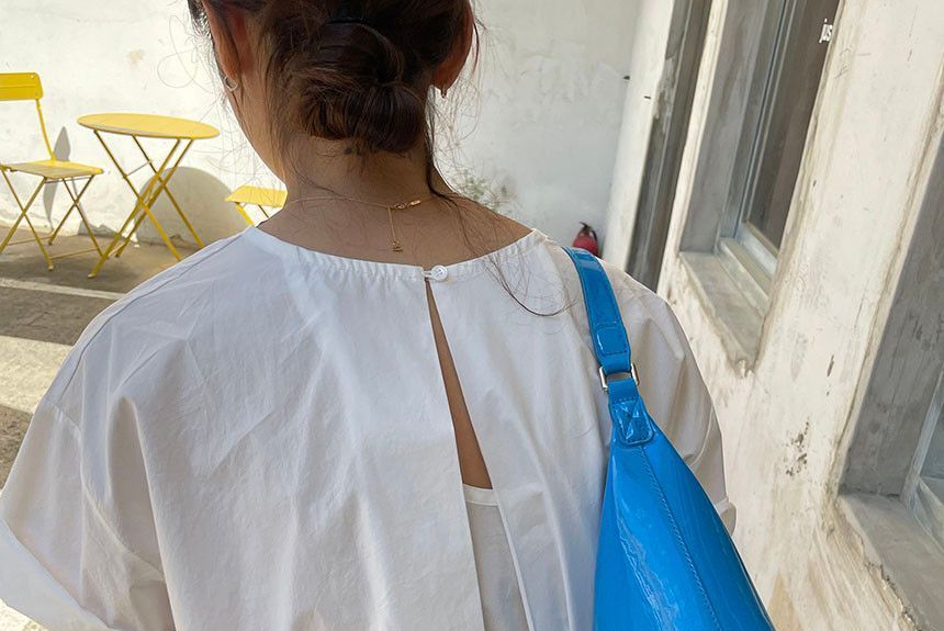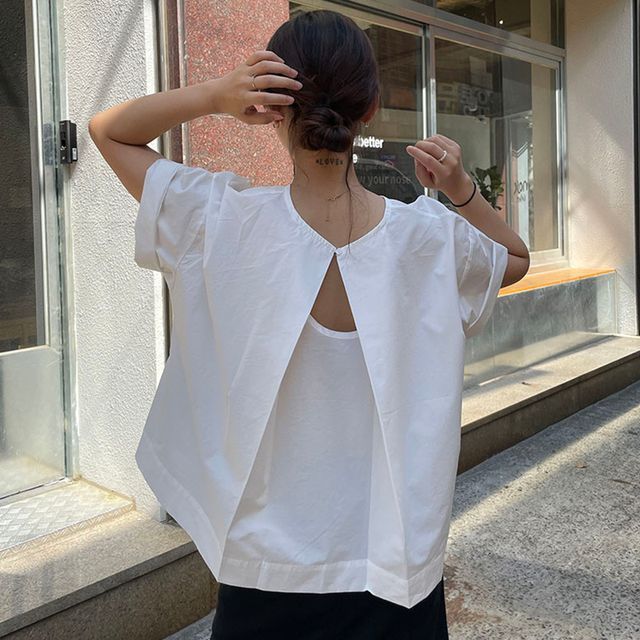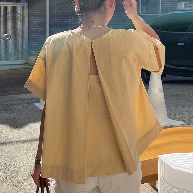 Short-Sleeve Crew Neck Plain Open Back Blouse