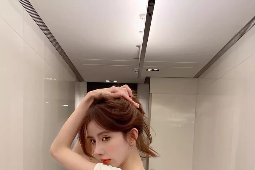 Short-Sleeve Plain Ribbed Henley T-Shirt