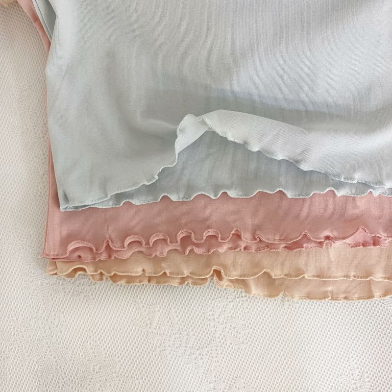 Short-Sleeve Round Neck Plain Lettuce Edge Crop T-Shirt