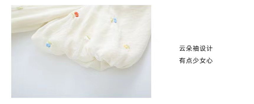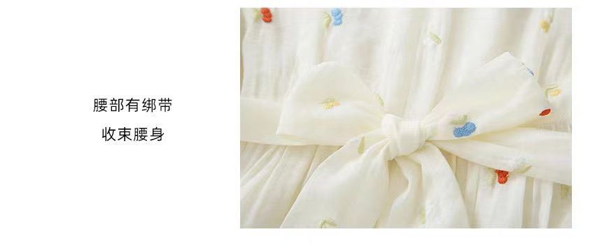 Short Sleeve Ruffle Collar Floral Embroidered Midi A-Line Dress