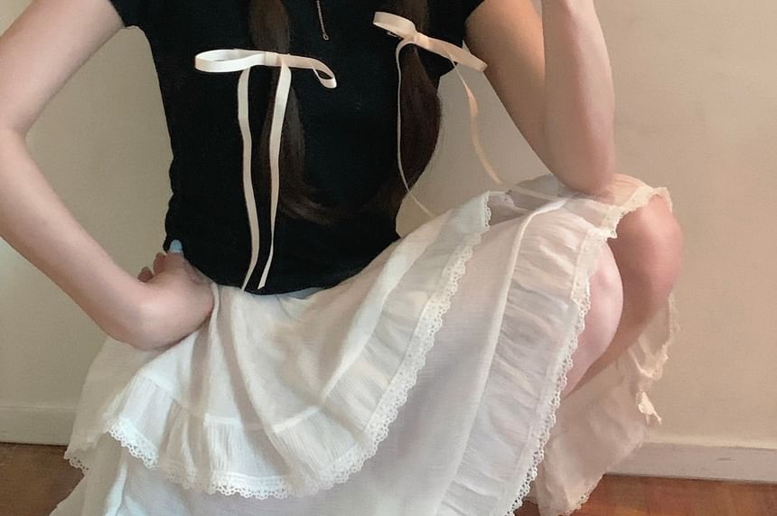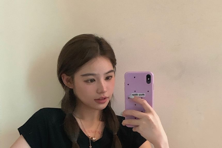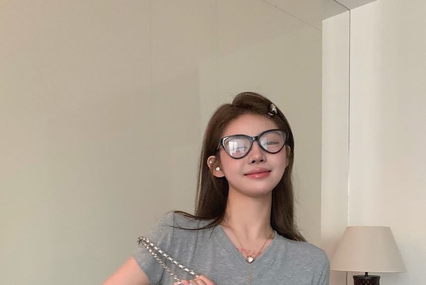 Short-Sleeve V-Neck Plain Asymmetrical T-Shirt