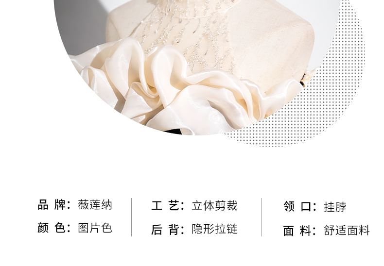 Sleeveless Cold Shoulder Sequin Ruched Panel Mesh Trumpet Evening Gown