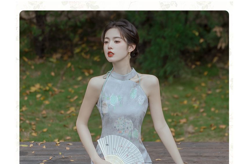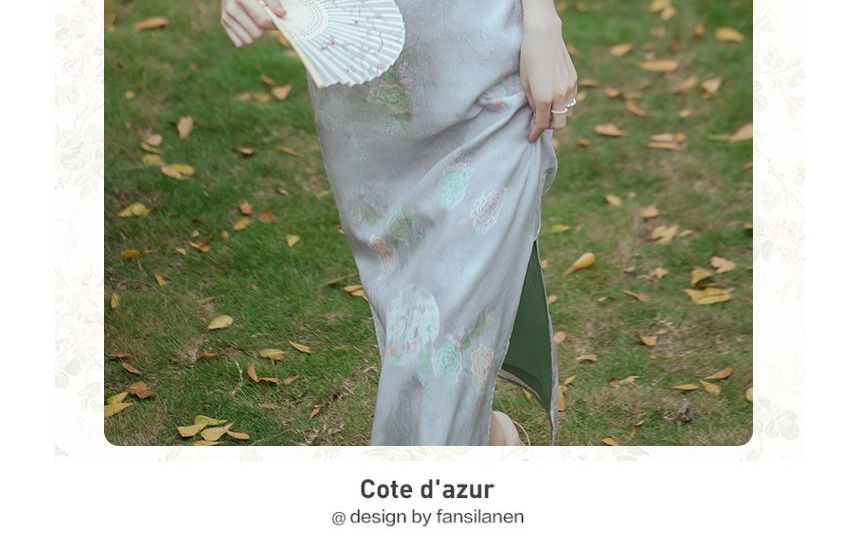 Sleeveless Floral Print Sheath Dress / Light Jacket / Set