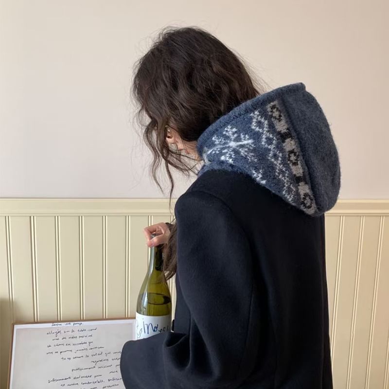 Snowflake Print Knit Balaclava