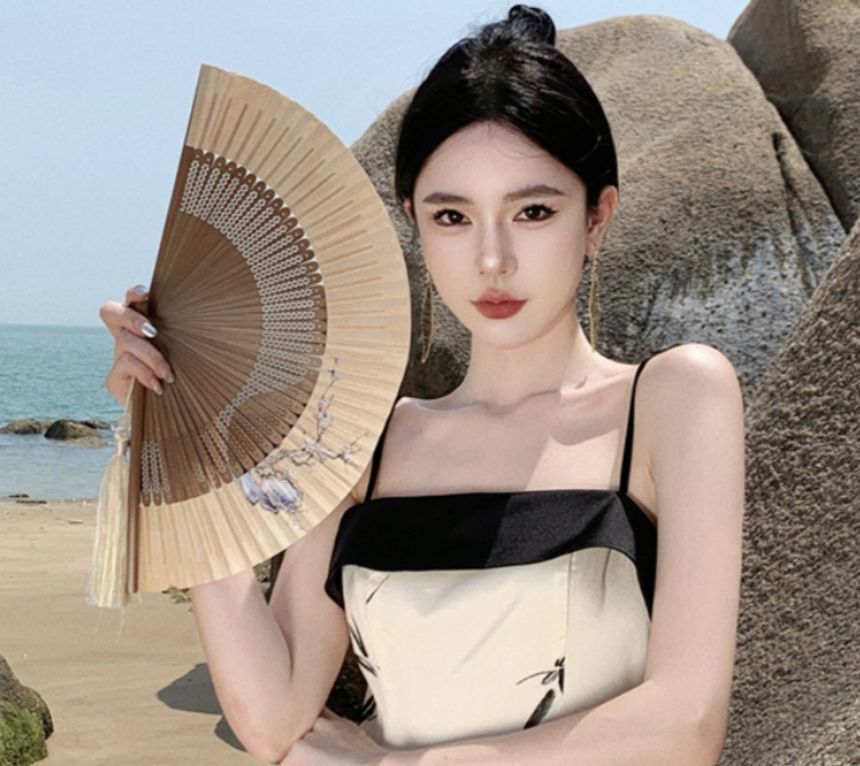 Spaghetti Strap Leaf Print Front-Slit Midi A-Line Dress