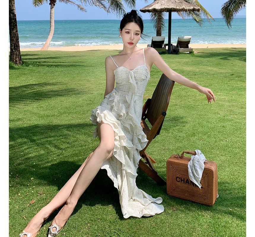 Spaghetti Strap Patterned Ruffle Asymmetrical Maxi Sundress