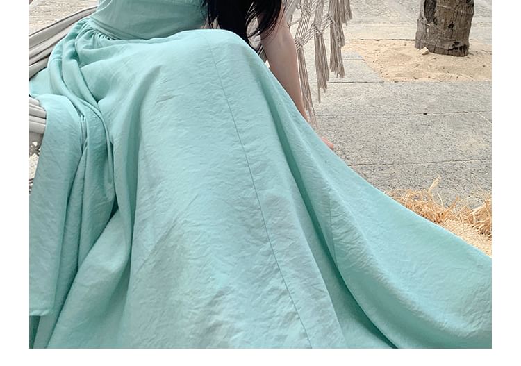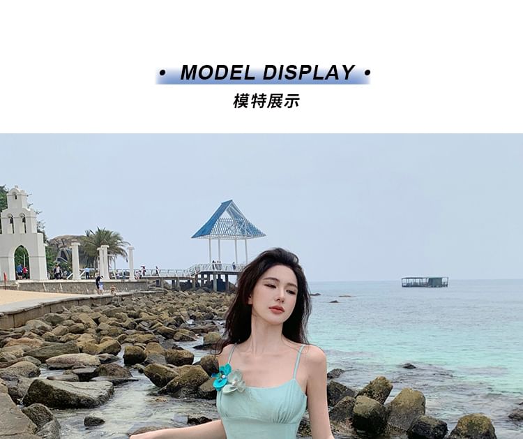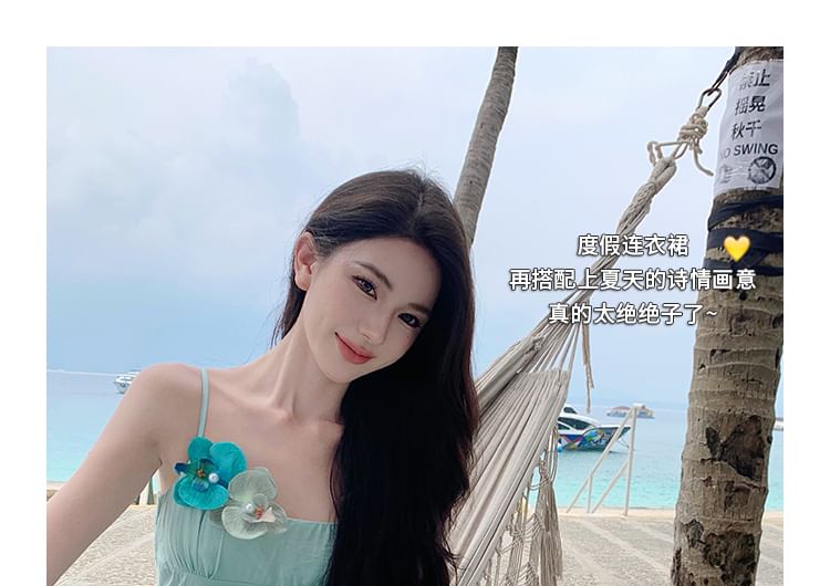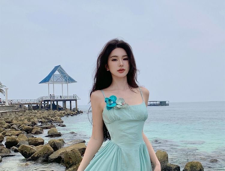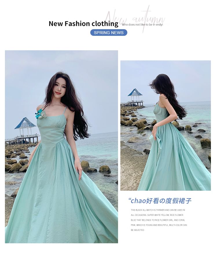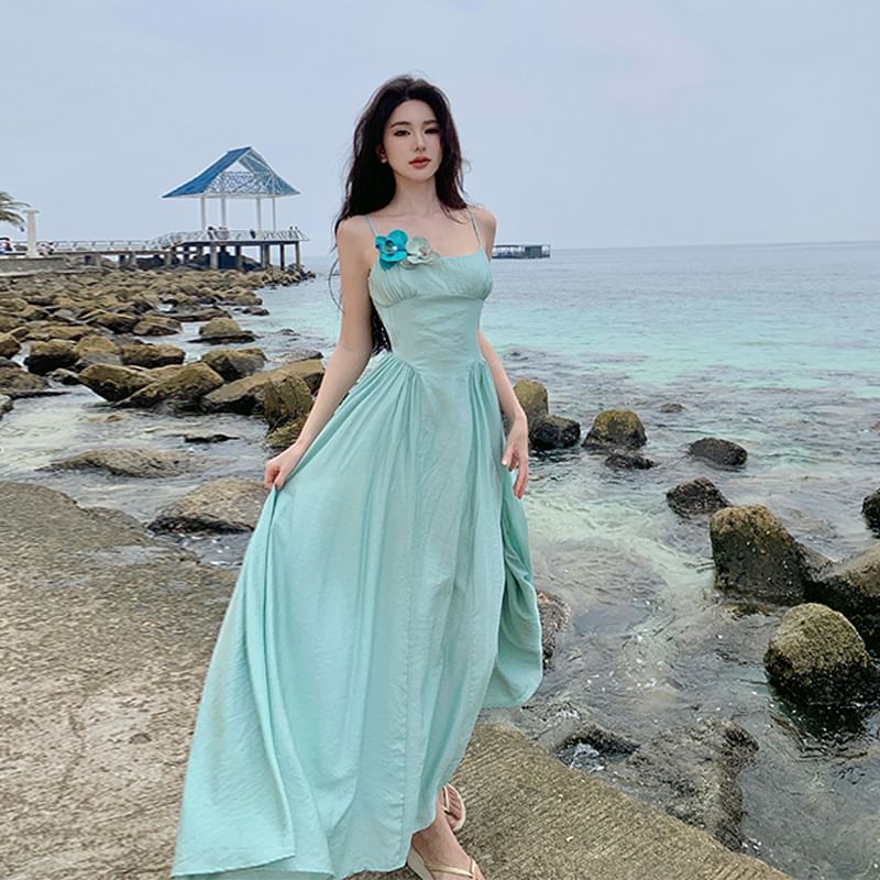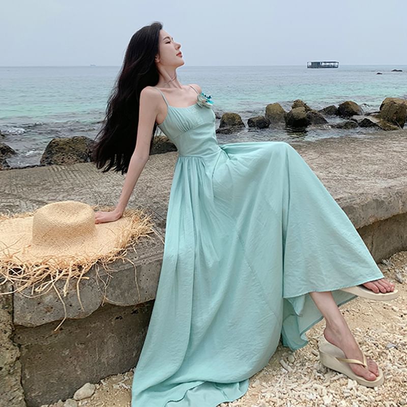 Spaghetti Strap Plain Flower Detail Maxi Sundress