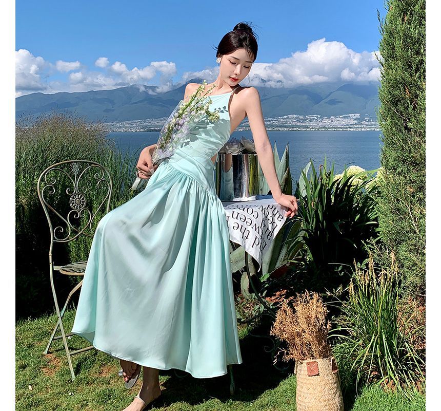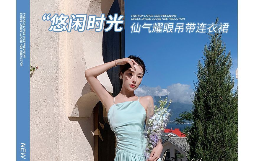 Spaghetti Strap Plain Open Back Midi A-Line Sundress