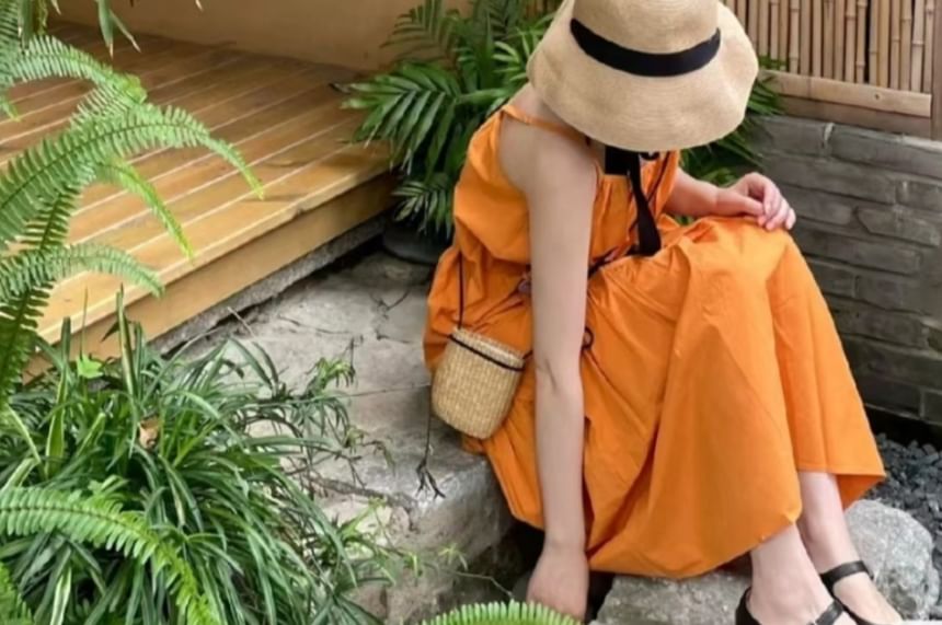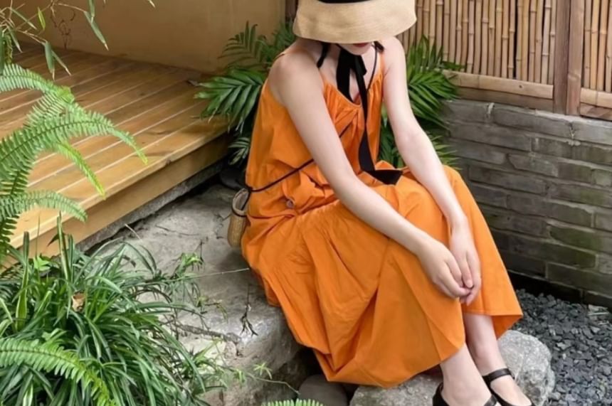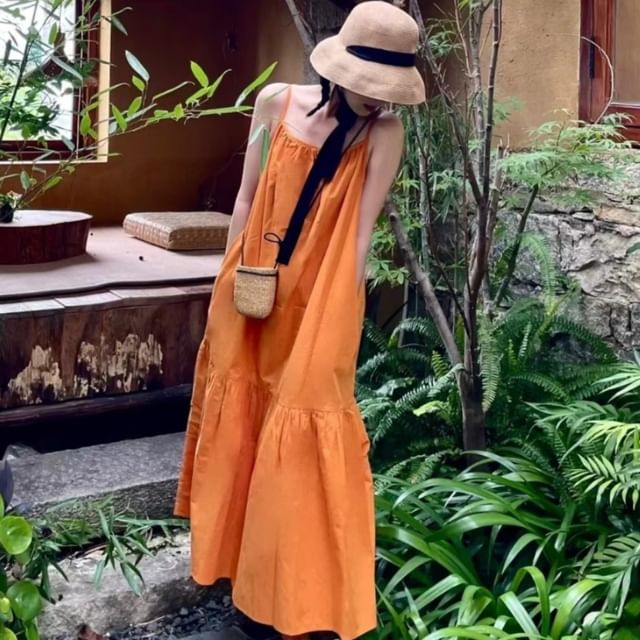 Spaghetti Strap Plain Ruched Tiered Maxi A-Line Dress