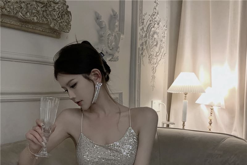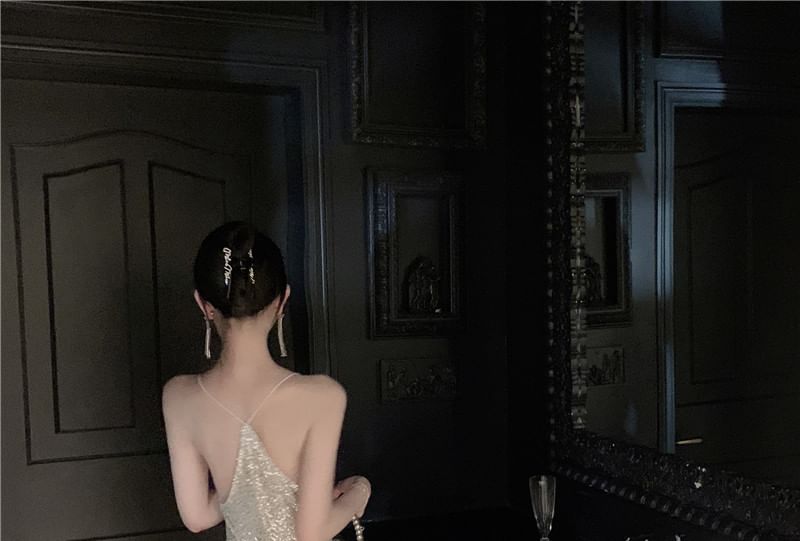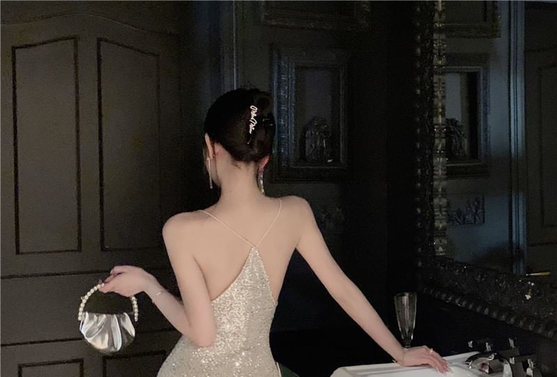 Spaghetti Strap Plain Sequin Mermaid Evening Dress