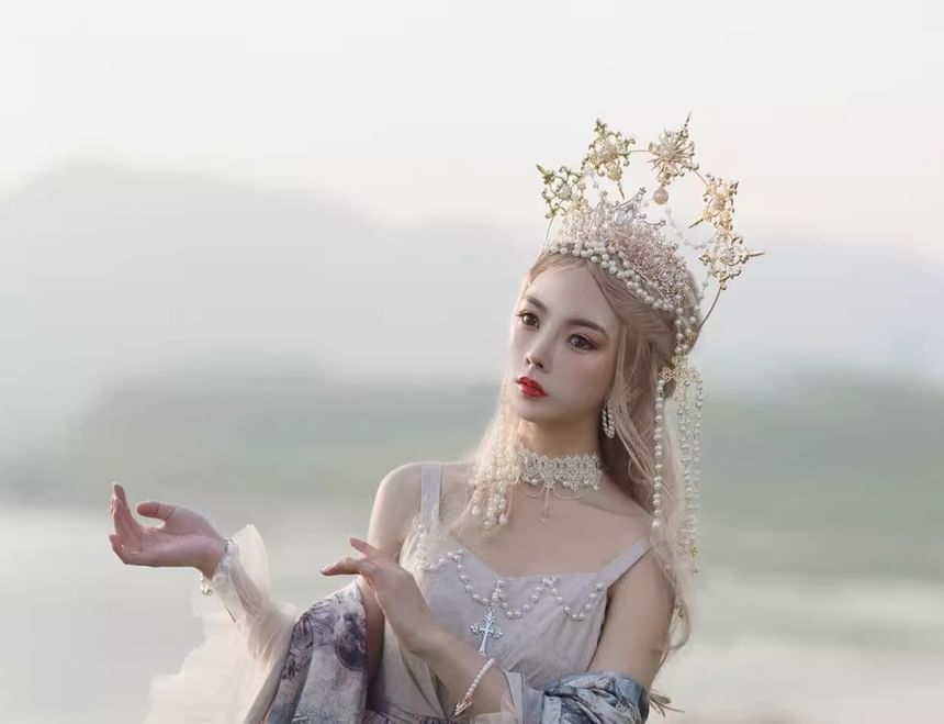 Lolita Spaghetti Strap Printed Maxi A-Line Dress / Scarf / Set