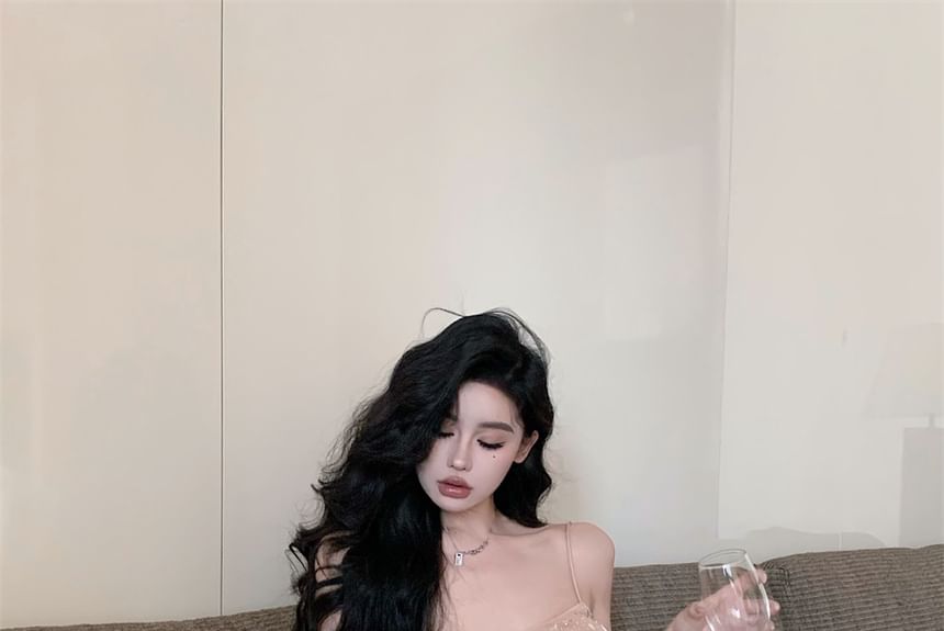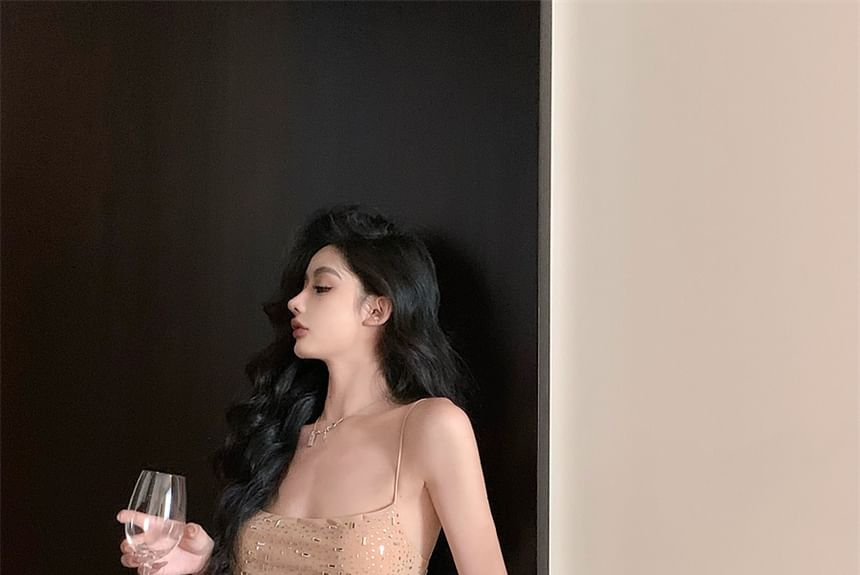 Spaghetti Strap Sequined Midi Mermaid Dress