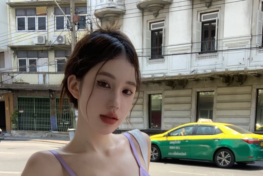 Spaghetti Strap V-Neck Plain Mesh Bodysuit Top