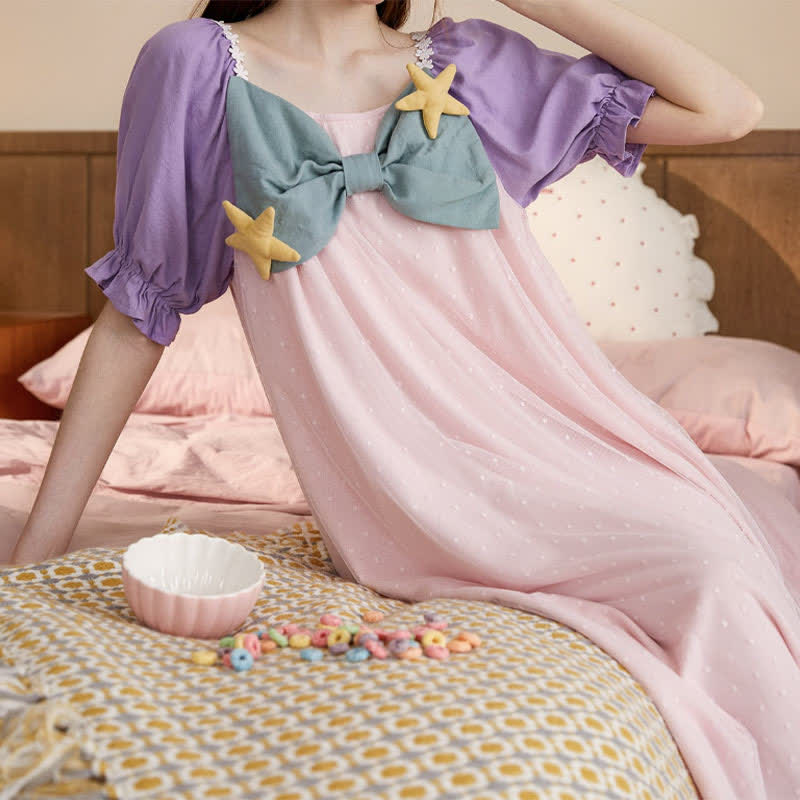 Square Collar Bowknot Mesh Mermaid Nightgown Pajamas Set