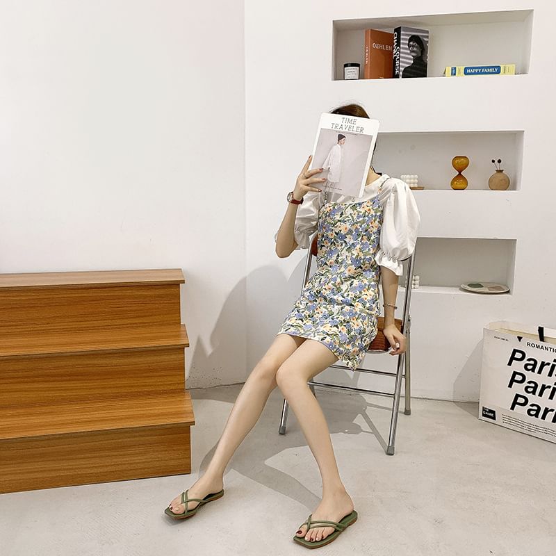 Square-Toe Sandals Toe-Loop Slide