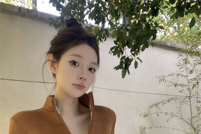 Stand Collar Plain Zip-Up Crop Jacket
