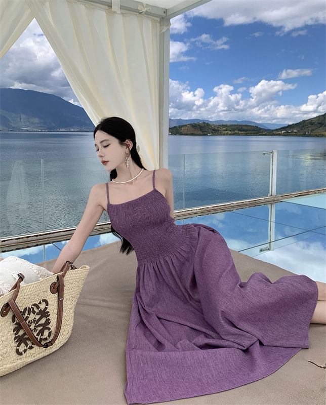 Spaghetti Strap Plain Midi A-Line Dress