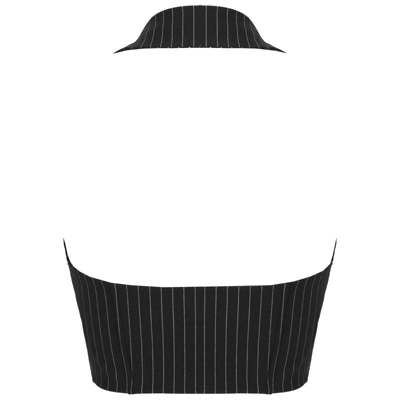 This elegant Stripe Lies Halter Tailored Vest boasts a tailored fit and chic halter neckline. Made with high-quality fabric, it's perfect for adding a touch of sophistication to any outfit. With its bold stripes and flattering design, this vest will elevate your style and make you stand out from the crowd.