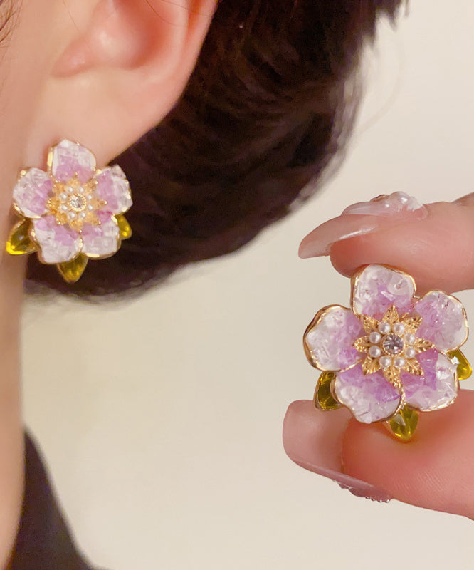 Stud Earrings Pearl Sterling Zircon Camellia Silver Overgild Modern Blue